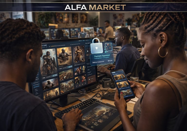 ALFA MARKET™ is the digital marketplace within the ALFA ONE™ ecosystem (African Legends & Future Alliance), designed to facilitate the exchange of cultural assets, in-game skins, characters, and digital collectibles within a player-driven economy.